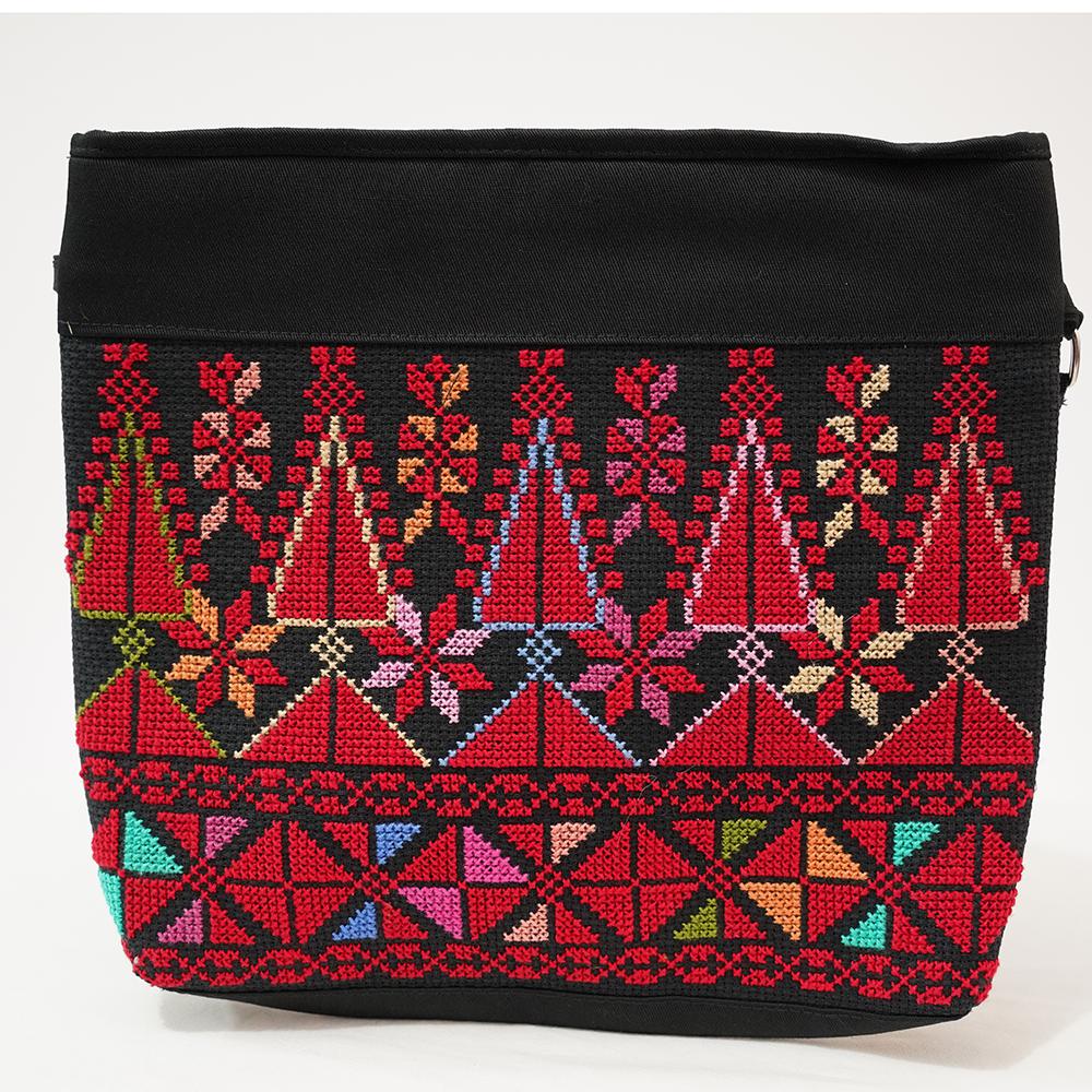 Fully embroidered front with one zipper and strap.