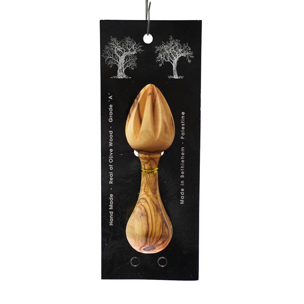 A special olive wood small kitchen utensil designed to extract juice from lemons or other citrus fruits such as oranges, grapefruit, or lime.