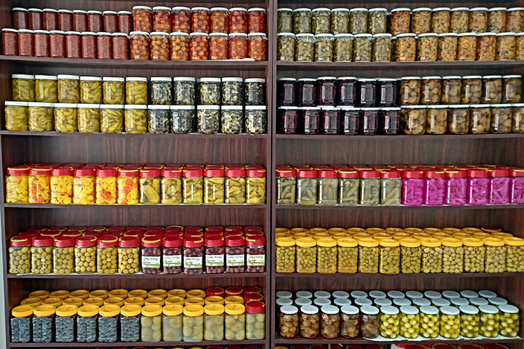 We have varieties of products, such as Labneh (Sauer Cream), Cheese, Thyme, and pickles of all kinds, such as pickled Eggplants, Olives of all kinds, Olive Oil, Tomato paste.