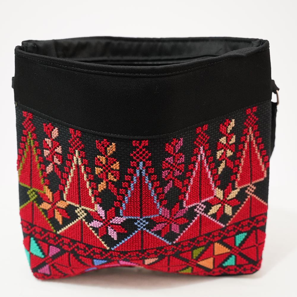 Fully embroidered front with one zipper and strap.